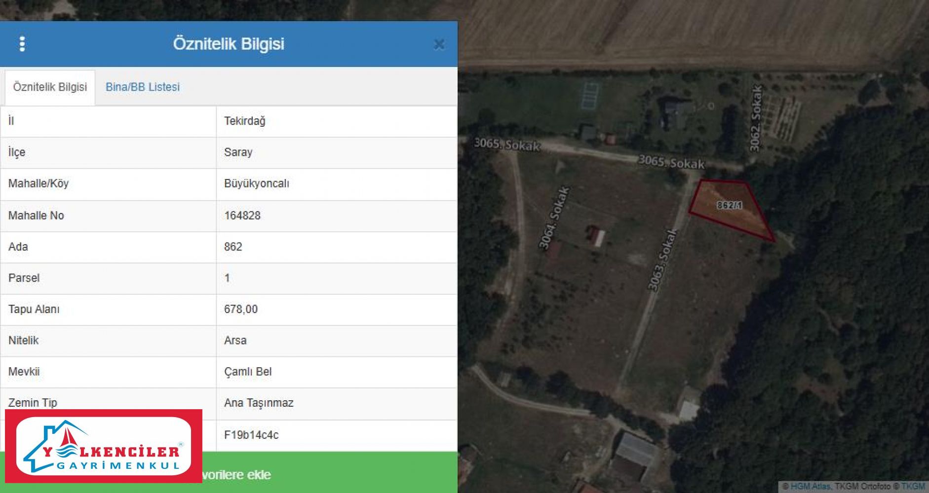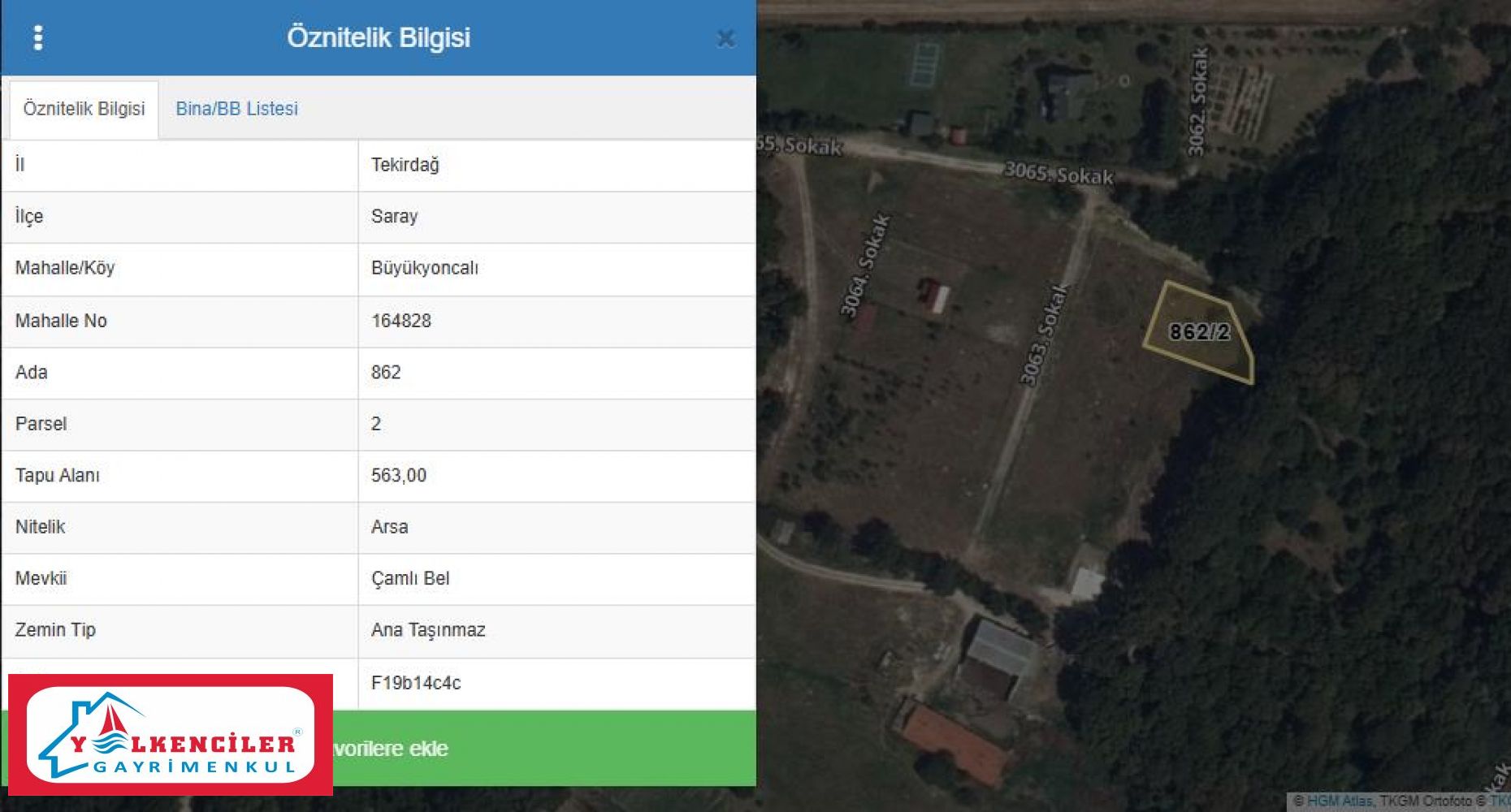 TEKİRDAĞ SARAY BÜYÜKYONCALI 1.745m2 BİTİŞİK 3PARSEL SATILIK ARSA