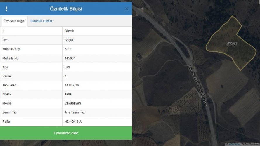 BİLECİK SÖĞÜT İLÇESİ KÜRE KÖYÜ SATILIK TEK TAPU MÜSTAKİL TARLA